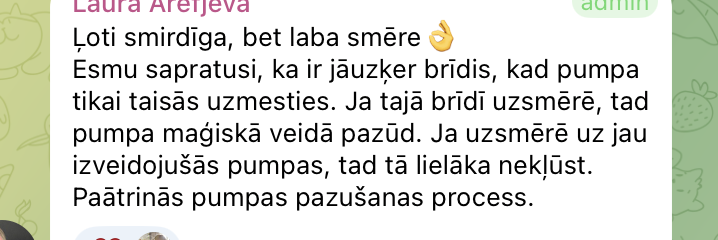 Uzklājot ir jūtams aromāts, bet smērīte strādā uzliekot uz pumpas pēc kāda brītiņa ir tāda kņudinoša sajūta gribas pakasīt to vietu.