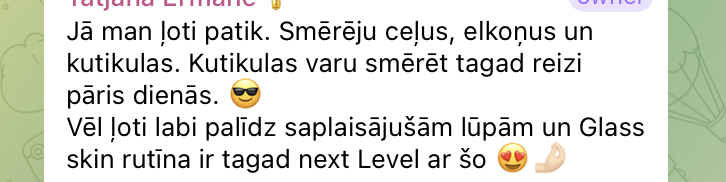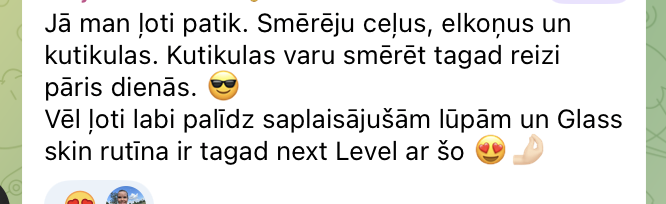 Man ļoti patik šis Chogan šī sviesta un eļļu maisījums. Smērēju ceļus, elkoņus un kutikulas. Kutikulas varu smērēt tagad reizi pāris dienās. 😎